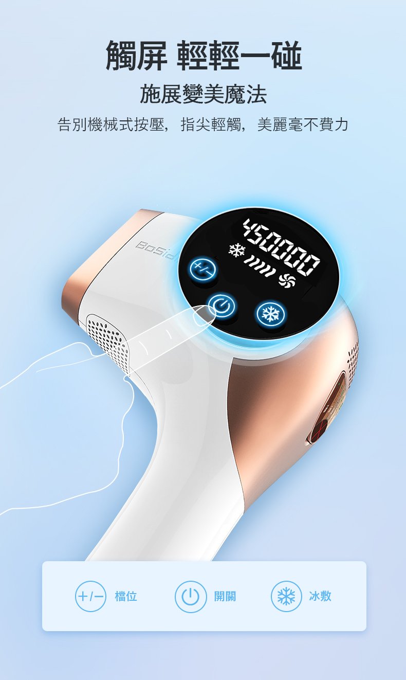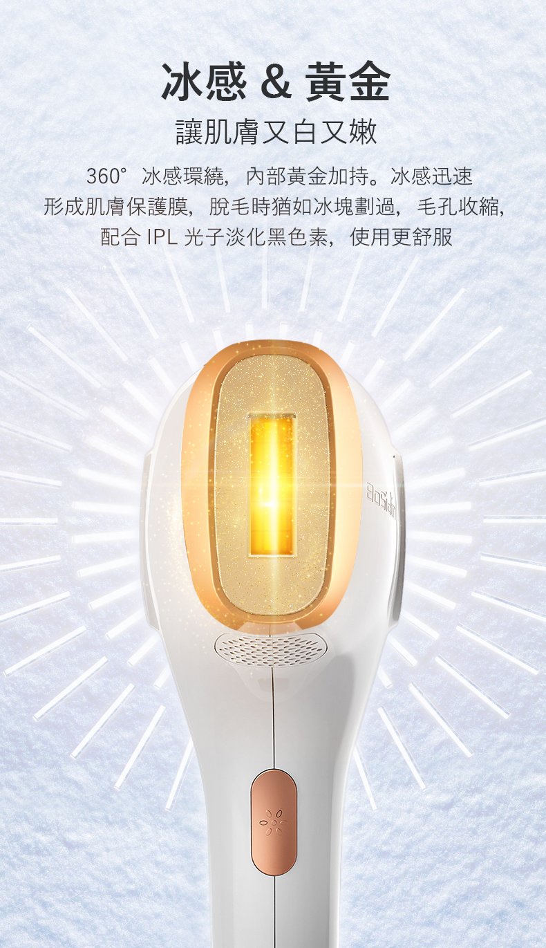 BoSidin 搭載 動態冷卻系統(DCD),在出光的同時於肌膚表面產生冰感效果,幫助降低使用時的不適感。多數使用者形容為「溫熱感」或「輕微刺感」,實際感受會依個人膚質與能量段位而異。